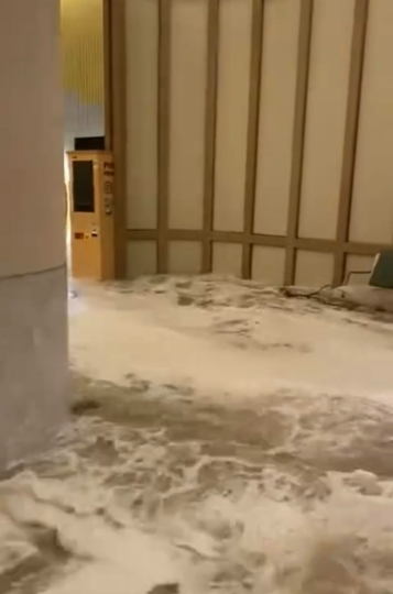 24日凌晨,香港一临海酒店玻璃被倒灌的海水冲破,大量海水涌入大堂。网友发布的视频显示,在海水冲破的一瞬间,大堂有人大喊,有人站不稳被海水裹挟冲倒。现场不时有人大喊“走啊”。