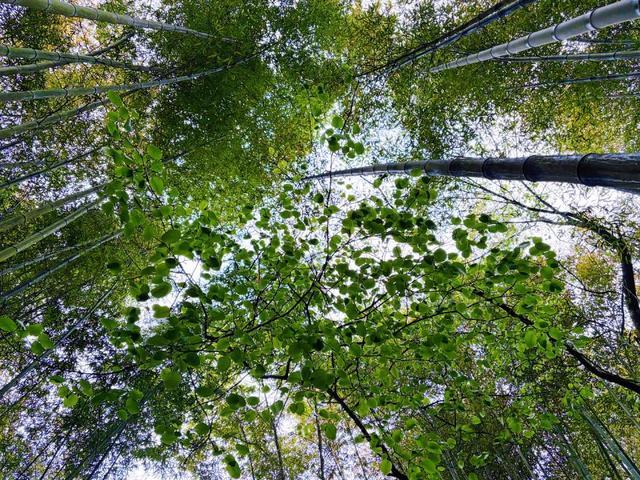 这里成片的大楠竹和雷竹都是依山势错落有致地分布生长成林,阳光只能从竹叶缝隙漏下来,地上全是斑驳的光影,非常适合拍照。