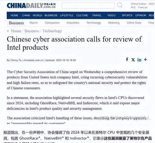 芯片这条线也是同样的逻辑。据中国日报英文版就曾报道:英特尔的处理器里面有一个叫管理引擎的玩意儿,从2008年开始就装进了几乎每一颗英特尔芯片。
