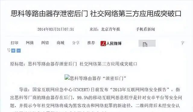 在2013年曝光的棱镜门里,斯诺登当时爆出来的材料里说得很清楚,美国国家安全局一直通过思科路由器盯着中国的网络和电脑。